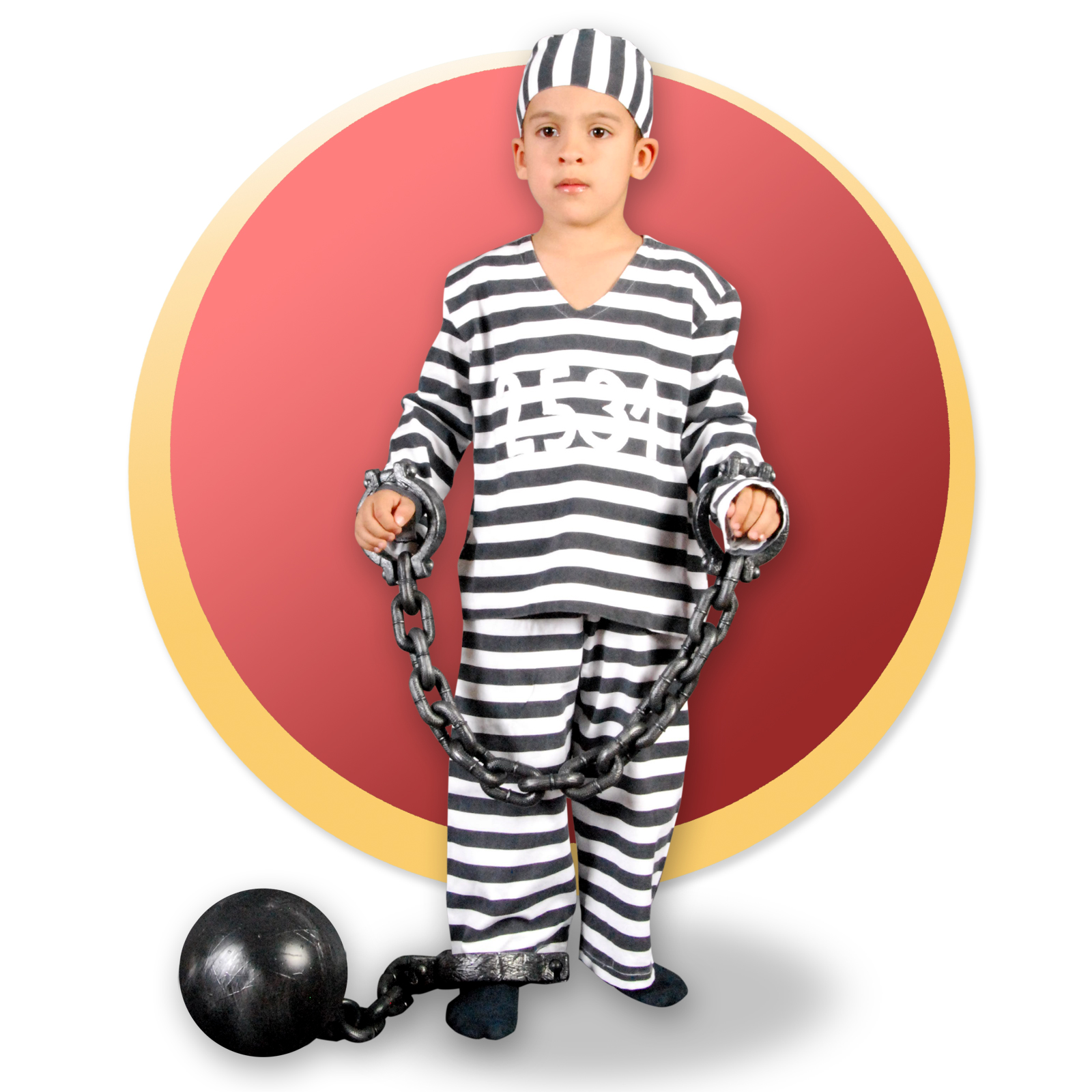 Kostim sadrži majicu dugih rukava, pantalone, kapu, okove.