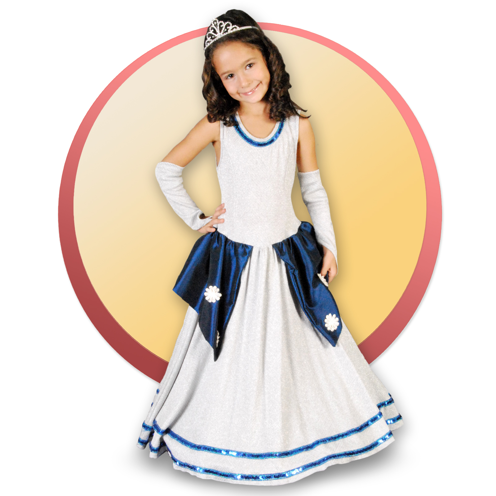 Komplet sadrži haljinu, rukavice i dijademu.
